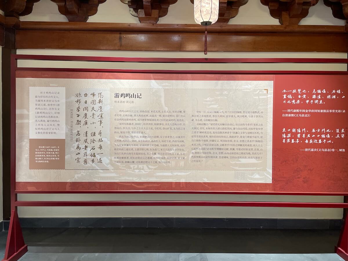 昔有金鸡鸣其上 义乌之行我们唯一去的景点是鸡鸣阁。这是临时决定的,因为跟原计划想象出入很大,商贸城并不值得逛两天,中东菜也不好吃。所以有点不甘心,好歹要去个景点,最后选择了这里。、鸡鸣阁广场是免费的,但是进入内部要收费。有意思的是有献血证就能免票,我在支付宝查到大学时的献血记录居然也放行了。这是我第一次因为献血得到优待,免了 30 块钱门票。广场内景 标签: 旅行游记 日期:2025-12-06