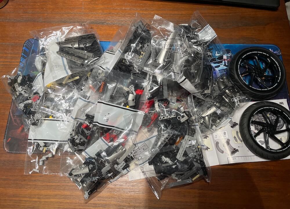在抖音刷到这款川崎摩托车拼装积木模型,百元价格,瞬间上头,马上下单。