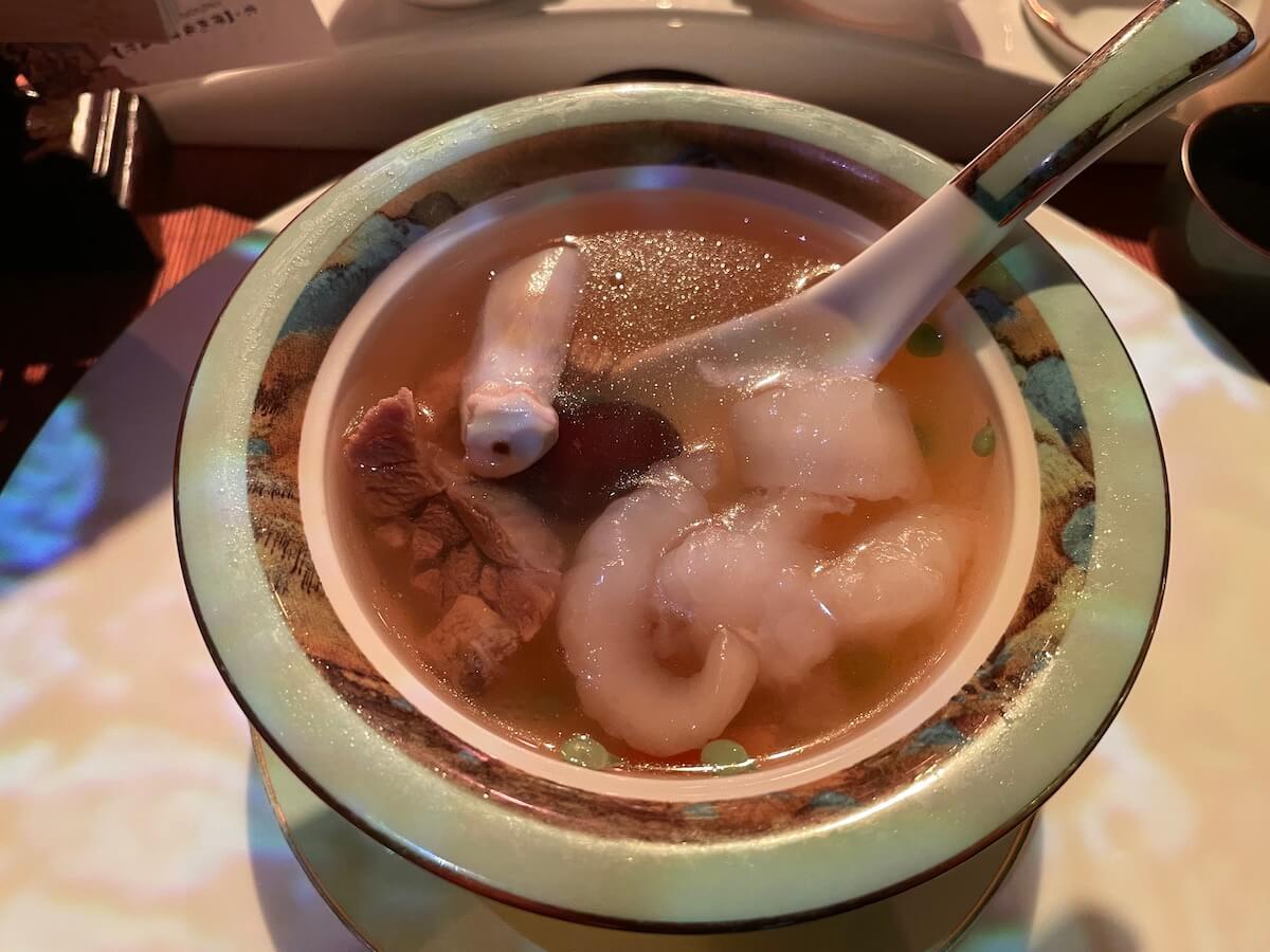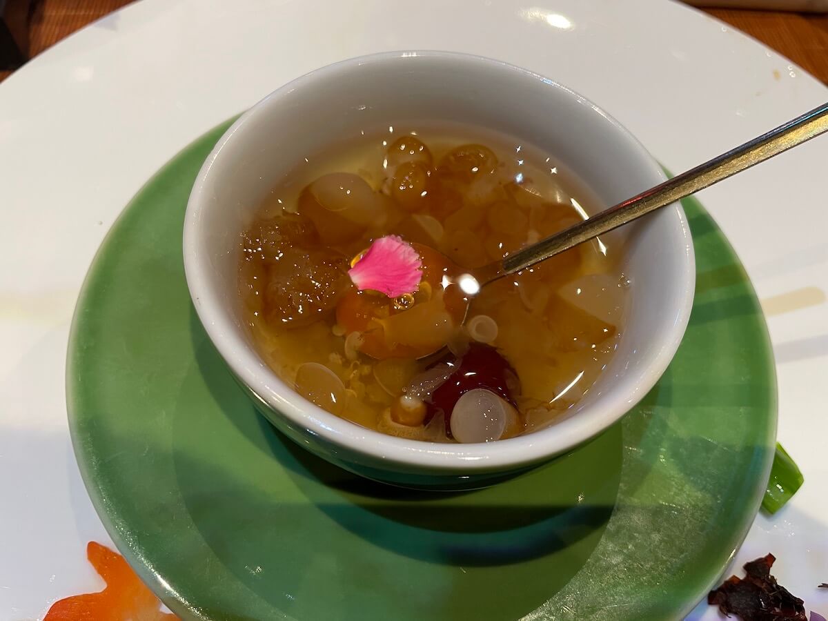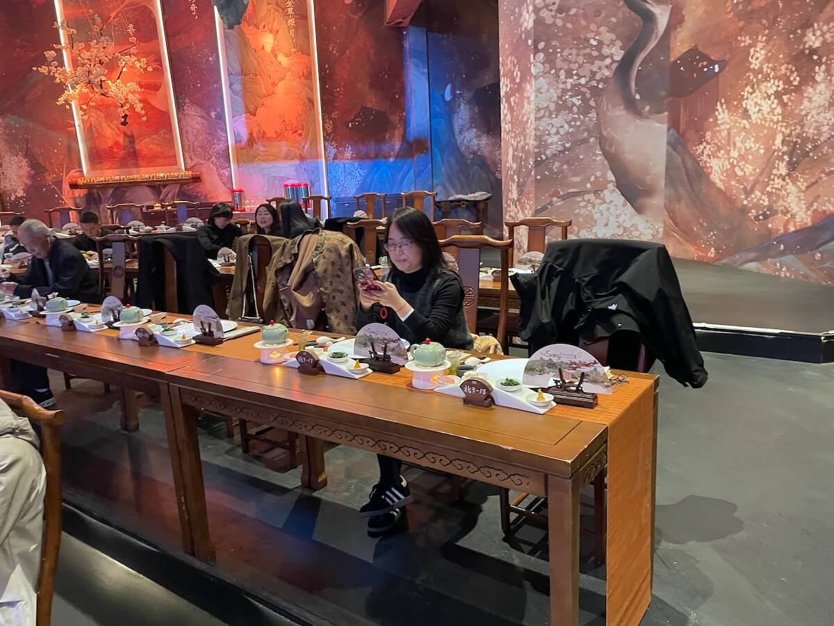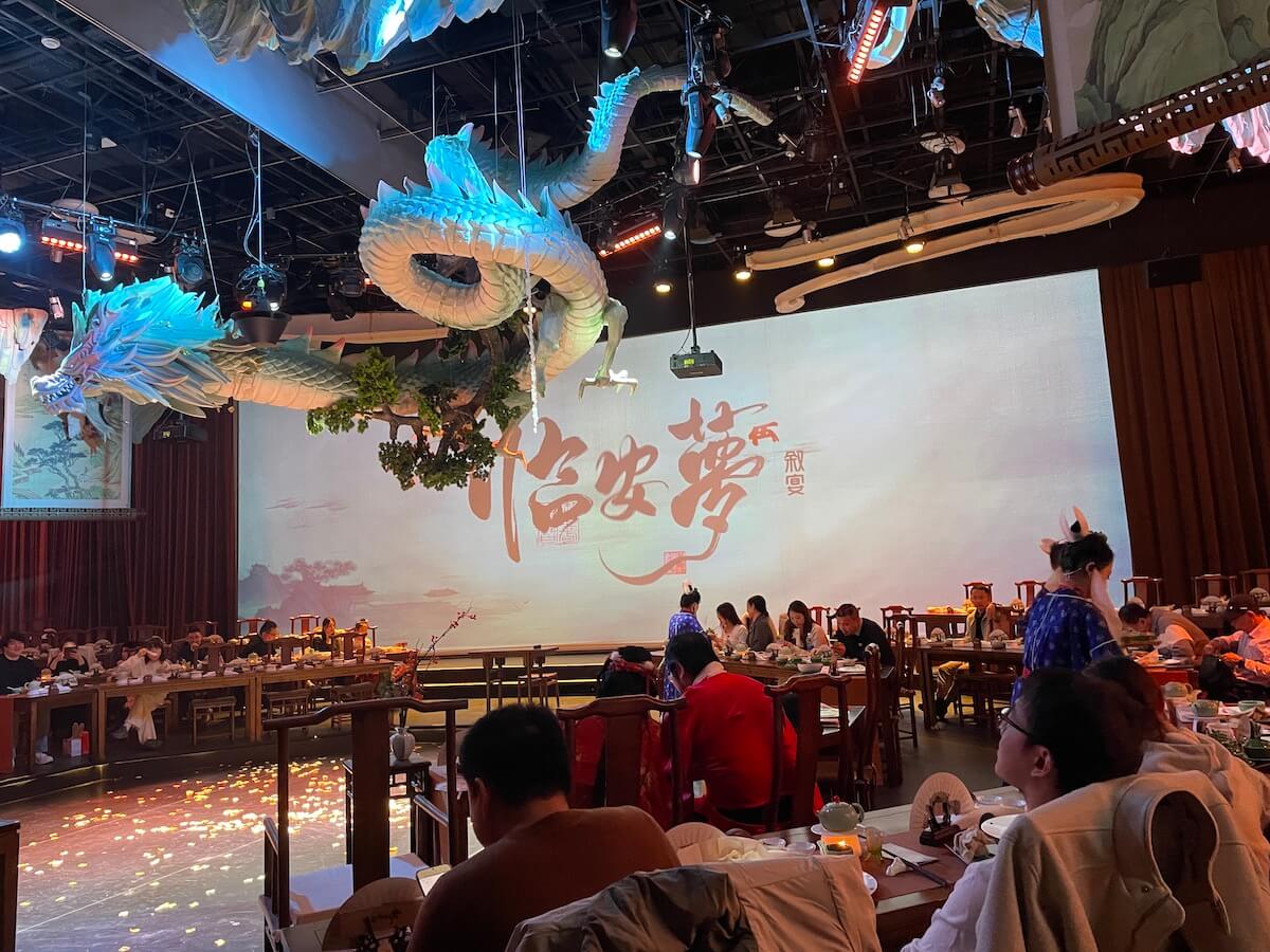 演出约一小时,每段节目结束后上一道菜。当然是预制菜,有几道菜过于鲜美,科技含量足。平心而论,演出和用餐都没有扣分项,但也不惊艳,没有硬菜。不过这么说的前提是,我是在抖音买的双人普通席(第三排往后),实付548元,偶尔带老婆二人世界一下是不错的。前面的 SVIP 席(第一排)两人要 980 元,VIP 席(第二排)两人要 780 元,那么我觉得不是很值。