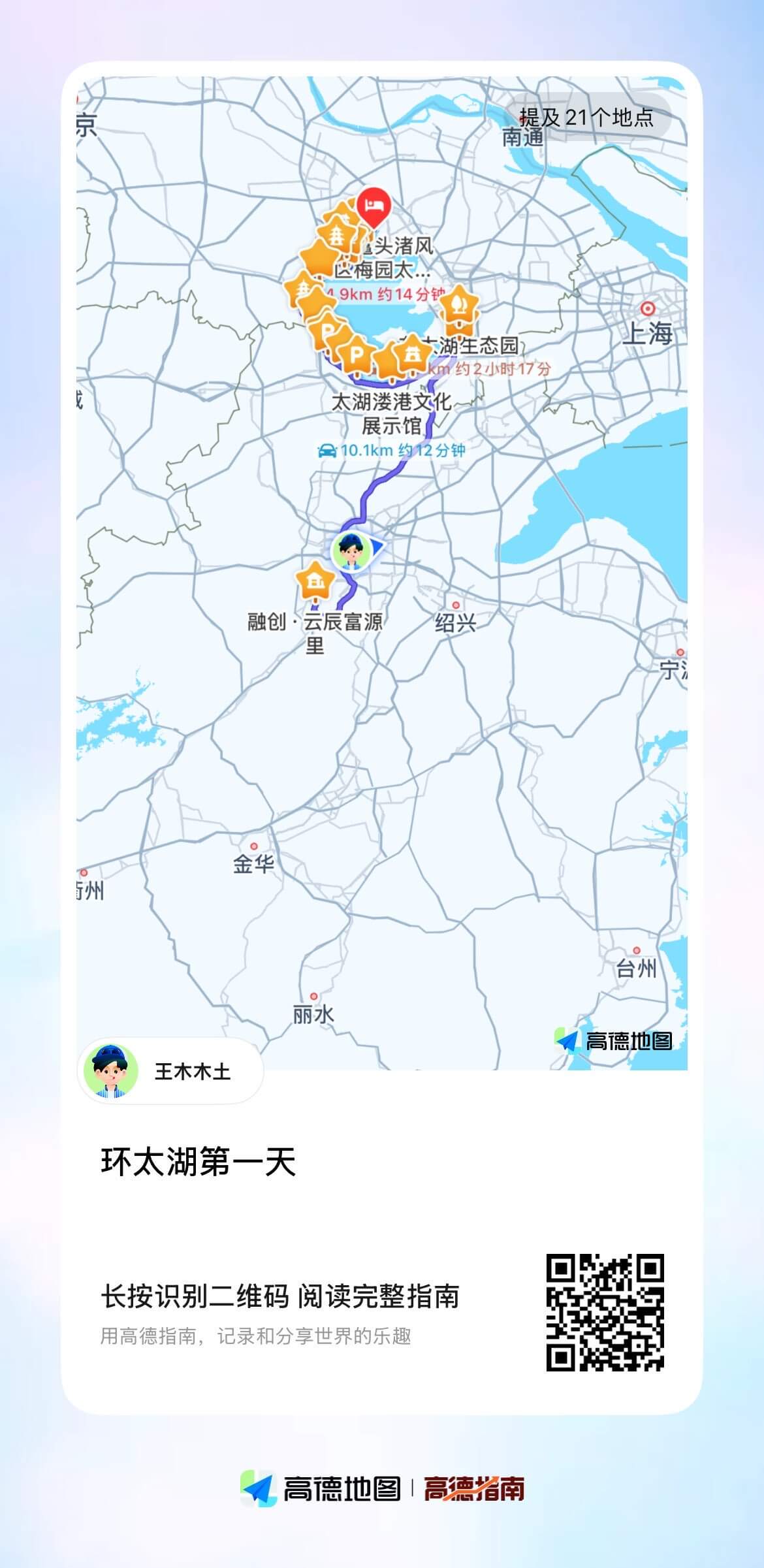 12月份就计划了元旦环太湖自驾游,结合多位博主经验用高德做了路线图(详见文末)。需注意的只有一点,要顺时针环湖行驶,离湖近,视野好。从杭州出发,合适的环湖起点是吴江摩途休闲驿站。