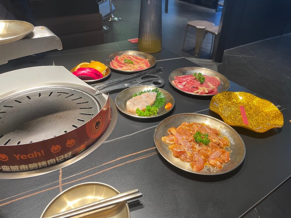 第一大特色就是店员代烤,烤好后放进上面的餐盘。这个服务很好,全程还换了三个烤盘,比大部分烤肉店自助烤焦的体验好很多。