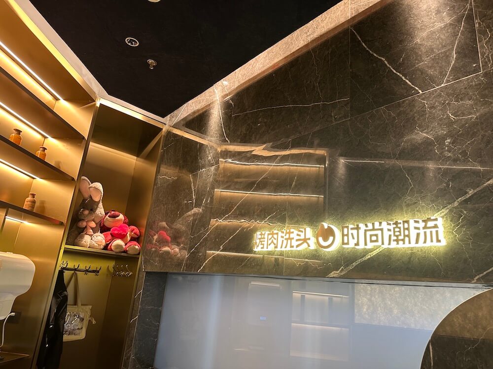 店里第二大特色是餐后洗头服务。但跟 UP 主讲的不一样,洗头是收费的,倒是很便宜只要 6.99 元。不过必须吐槽电动按摩床太高,幅度太大,我衣服都遮不住。